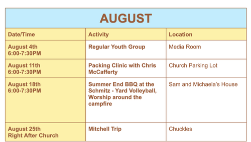 Summer Youth Calendar - Update for August